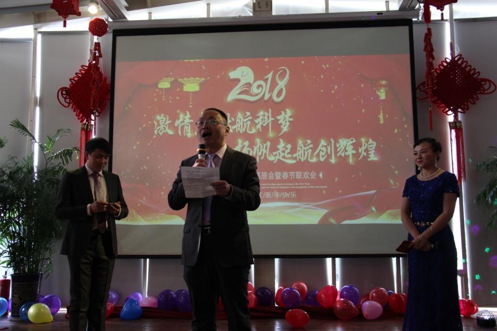 在年會晚宴開始前,董事長王浩靜先生致祝酒詞。王總首先感謝全體員工的辛苦付出,尤其要感謝員工家屬對另一半的工作支持;其次王總表示2018年將是航科發(fā)展非常重要的一年,希望全體員工繼續(xù)保持奮斗激情,全力沖刺完成2018年各項目標;最后王總向全體員工及家人拜年,祝福所有人新春快樂、闔家歡樂!在歡樂的氣氛中,全體員工共同舉杯慶賀公司美好的前程,也相互祝愿新的一年萬事順意!